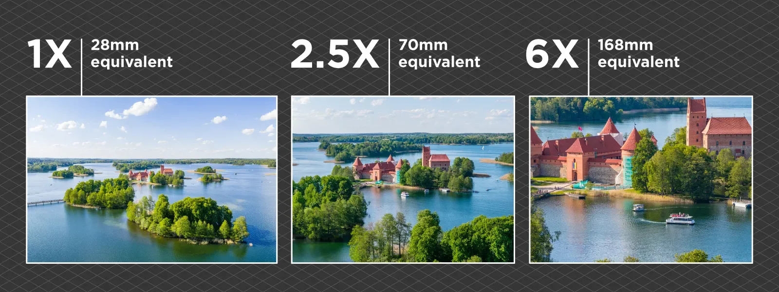 Three lenses, endless possibilities. Capture sweeping landscapes and stunning close-ups with unprecedented detail.